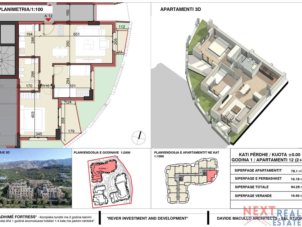 Projektuar nga arkitekti zviceran Davide Macullo, “Radhima Fortress” përfaqëson një vizion modern të arkitekturës mesdhetare, ku funksionaliteti ndërthuret me estetikën. Apartamentet ofrojnë plane funksionale, ndriçim natyral maksimal, dhe veranda të mbrojtura që sigurojnë hapësira të qeta për relaksim.